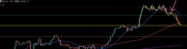 緑線より下に1時間足の買い支え勢力が居る。
