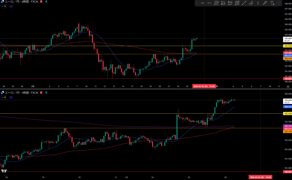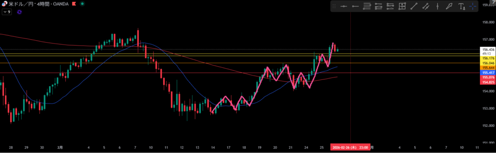 移動平均線は4時間足の買い支えとして機能しやすい。