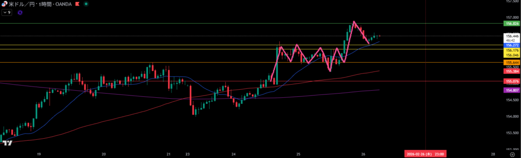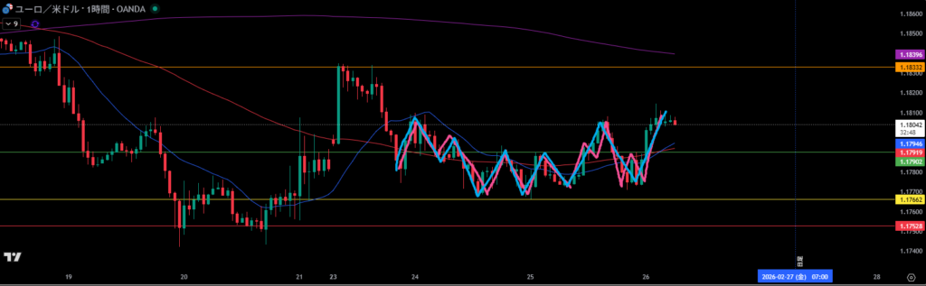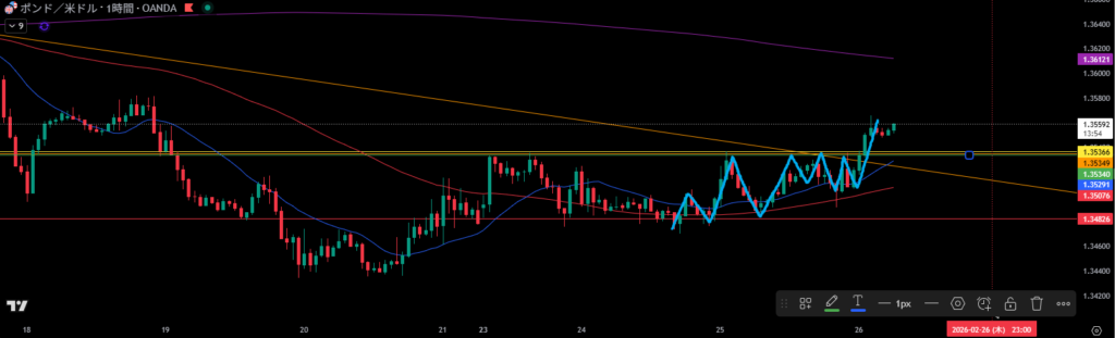 移動平均線は1時間足の買い支えとして機能しやすい。