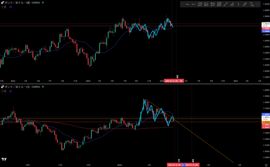 オレンジ線より上に日足の戻り売り勢力が居る。